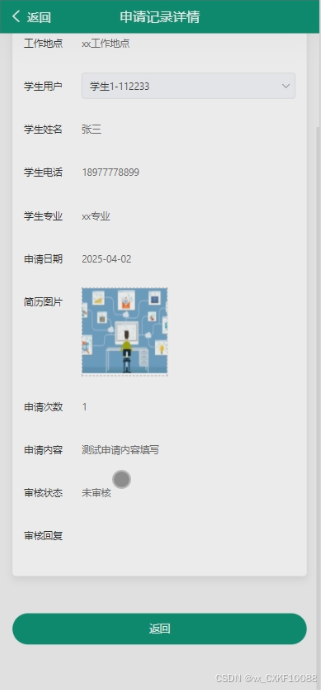 | 查看兼职信息测试 | 登录系统 进入兼职信息页面 点击详情查看完整信息 | 无 | 符合预期 |
