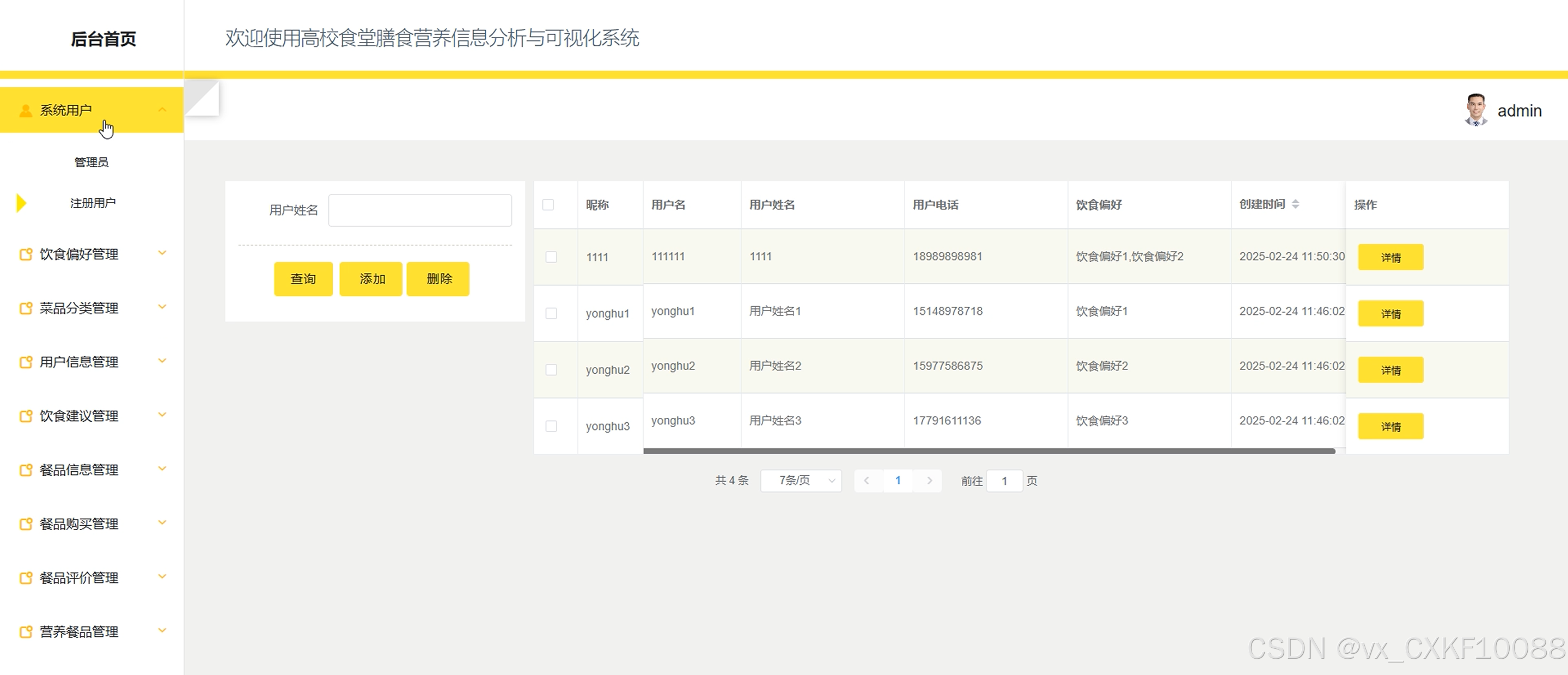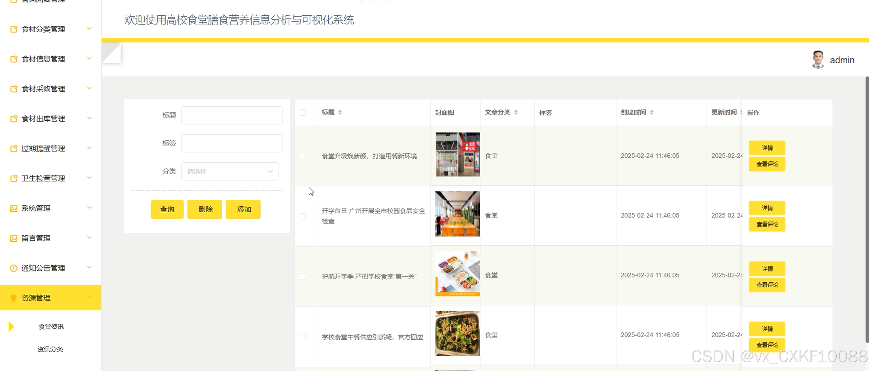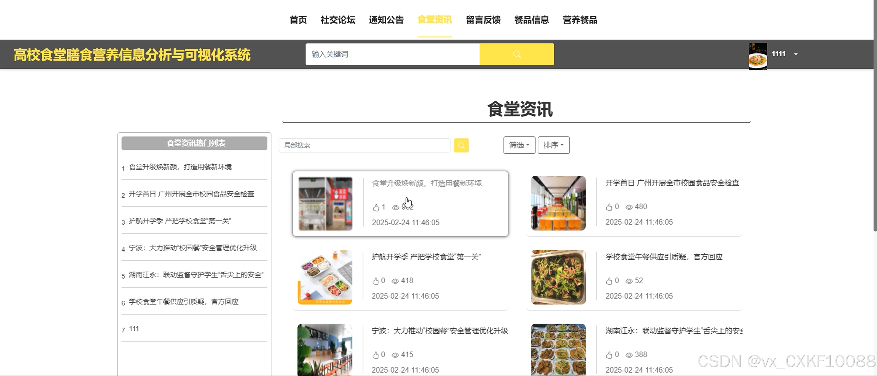 Keywords: Analysis and visualization system for dietary nutrition information in university canteens; SpringBoot; Vue; MySQL