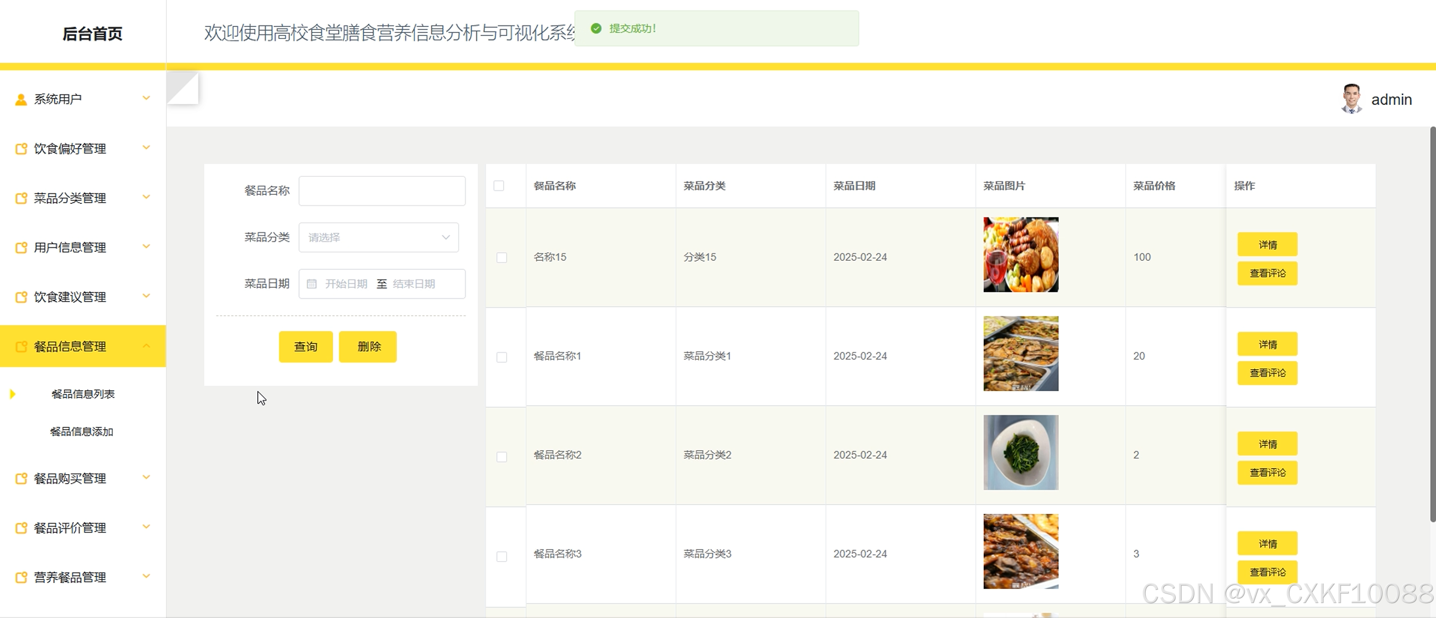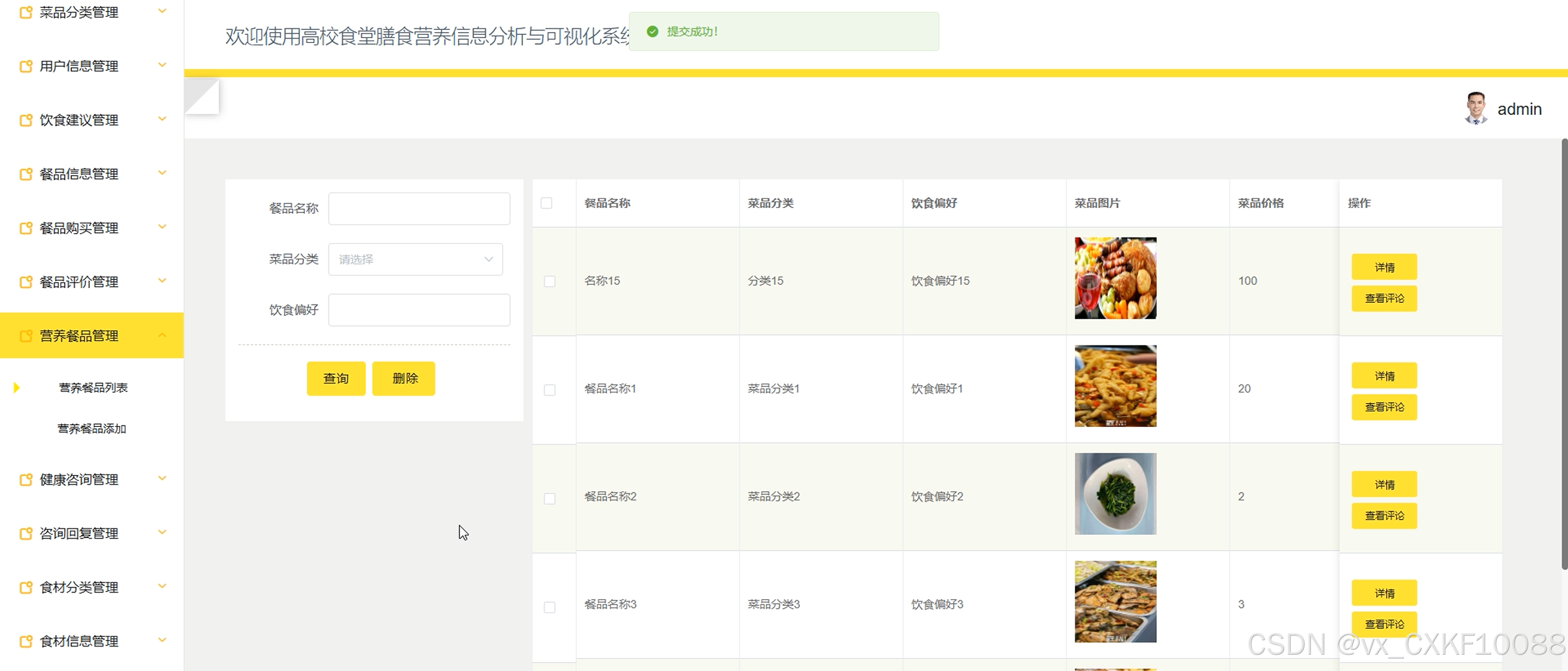 图5-7 营养餐品管理界面