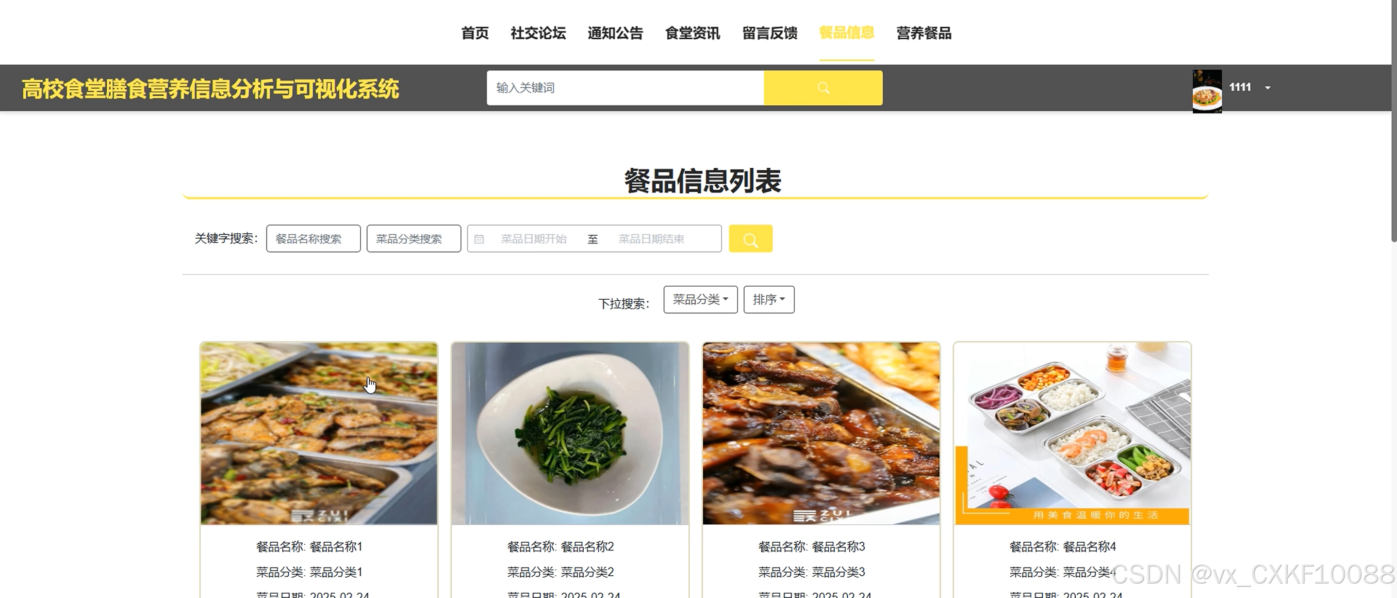 The user end has rich functions, supporting meal information query, personalized recommendation, and order management. Teachers and students can check the nutritional content and prices of meals in real time, obtain dietary advice based on personal health needs, and complete online ordering and other operations through the system. The administrator side covers functions such as meal information management, nutritional data analysis, and system configuration. Cafeteria management personnel can easily maintain meal information, monitor nutritional data in real-time, optimize meal combinations, and ensure the efficiency and scientific operation of the cafeteria.