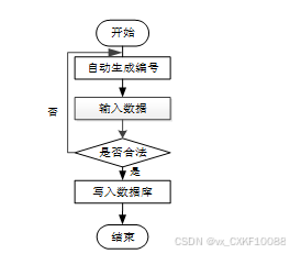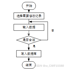 用户首先选择需要修改的记录,输入修改后的数据,系统判断输入数据是否合法。若数据不合法,提示重新输入;若数据合法,则将修改后的数据写入数据库,完成操作后流程结束。修改信息流程图如图4-4所示。