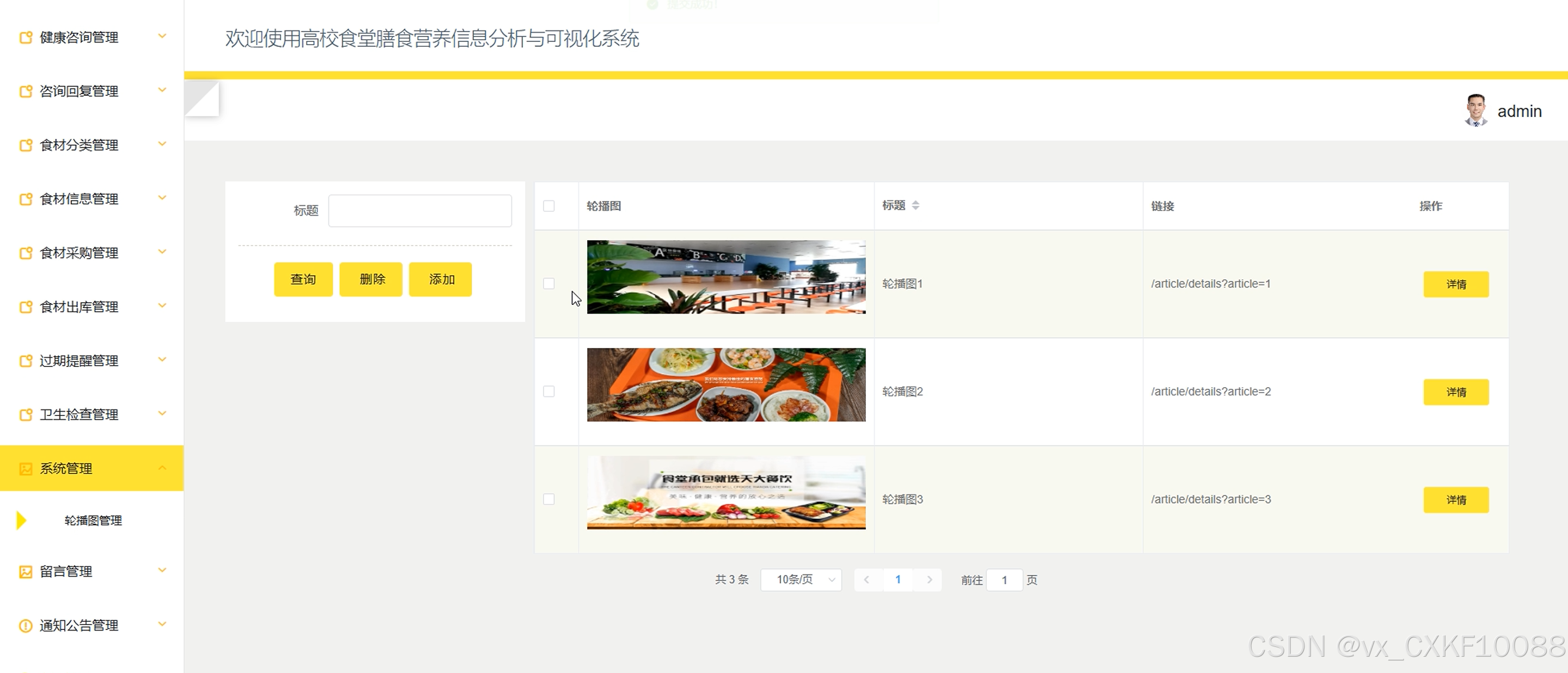 管理员可以对系统的基础设置进行管理,包括轮播图的上传、编辑和删除,系统管理功能确保平台的展示内容和运行参数符合企业需求。其界面图如下。