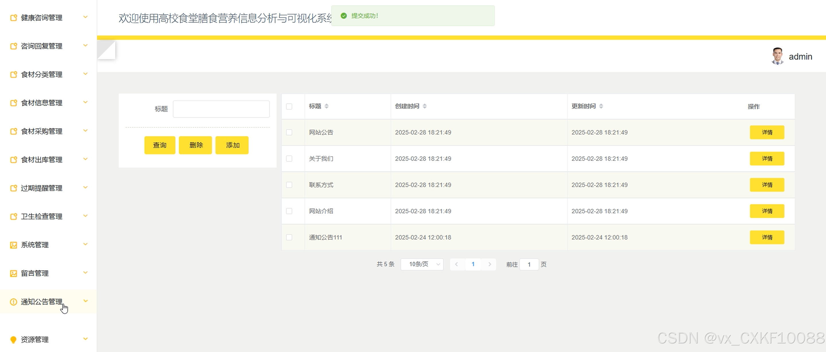 图5-10 通知公告管理界面