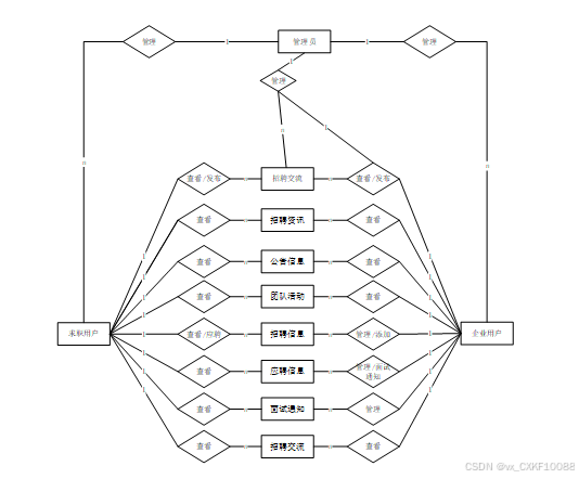 管理员可以对系统中的用户进行管理,包括求职用户、企业用户和其他管理员。可以增删改查用户账号,确保系统的安全和管理的高效性。流程图如下所示。