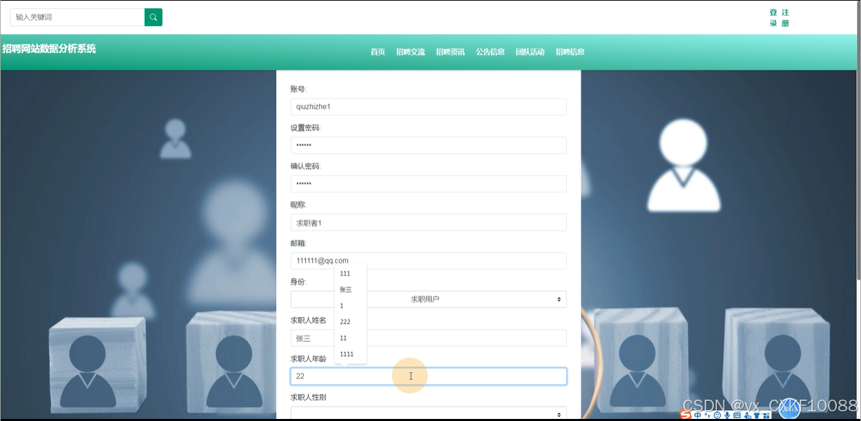 前端求职用户模块: