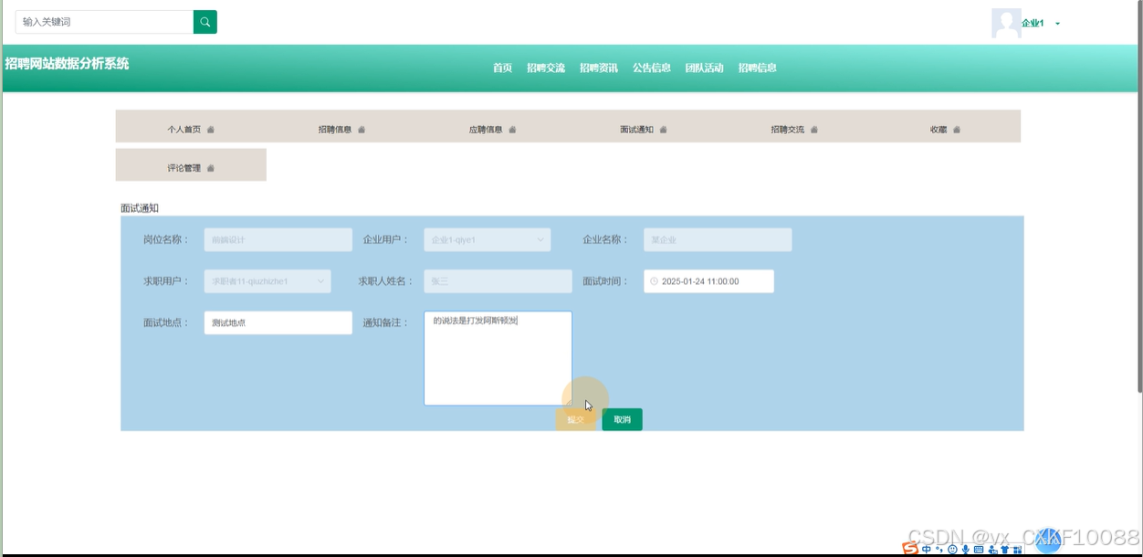 面试通知管理:管理员可以管理和查看所有面试通知的信息,确保面试安排的顺利进行。管理员可以对面试通知进行查看、查询、重置和删除操作,确保所有面试通知信息的准确传达。管理员还可以管理面试通知的内容,确保面试安排的清晰和及时。