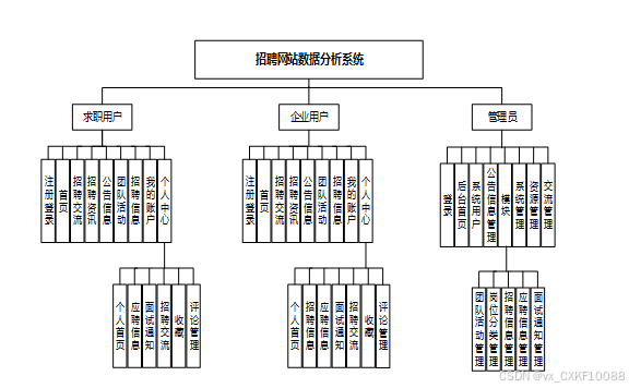 招聘网站数据分析系统划分为了前端模块和后端模块两大部分。