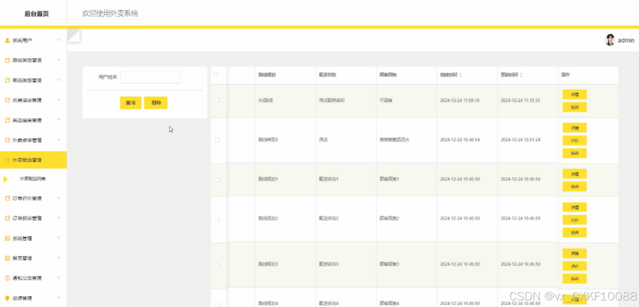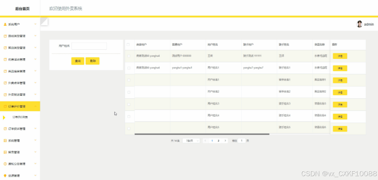 商家可以查看用户对订单的评价,了解用户需求和反馈,用于改进服务和菜品。管理员则监管所有订单评价,确保评价的公正性和真实性,维护平台声誉。订单评价管理界面如图5-10所示。