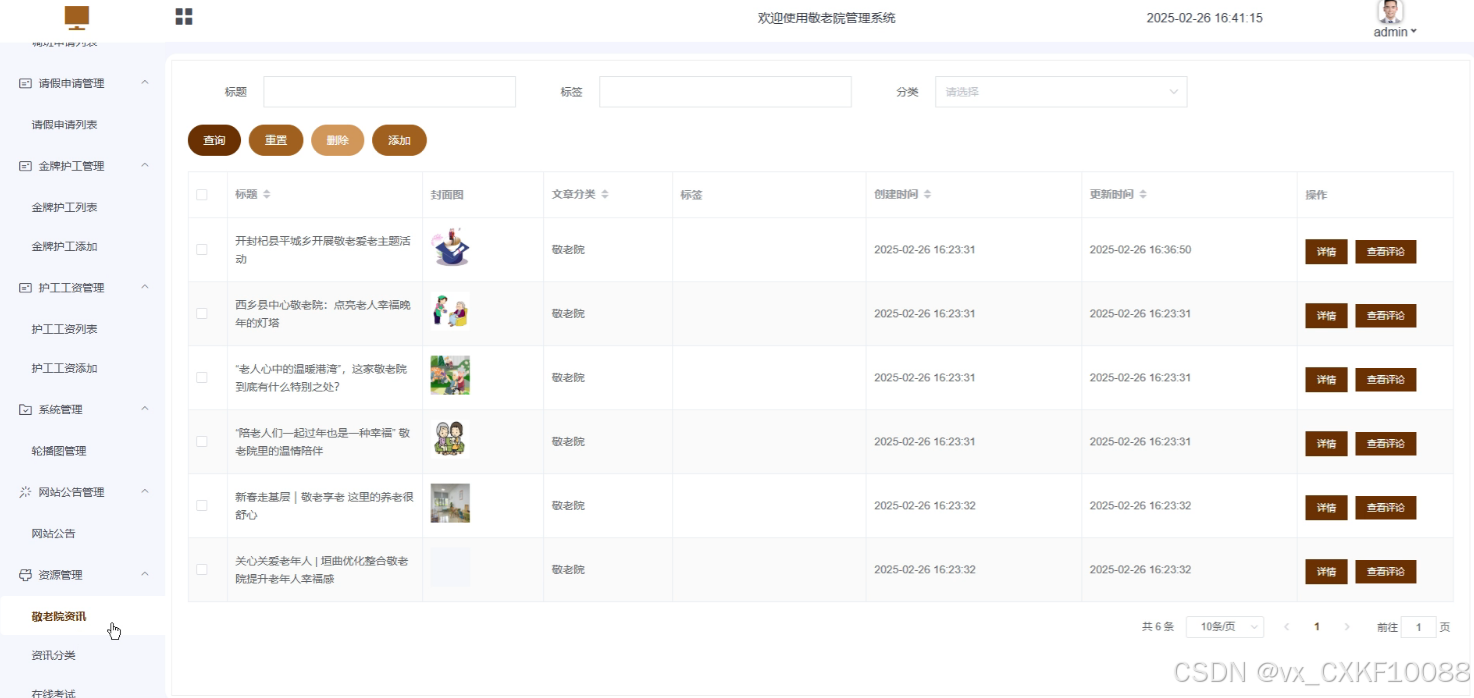 - 敬老院资讯:此部分提供敬老院的新闻、活动和重要信息,护工可以对感兴趣的内容进行点赞、收藏和评论,增加互动性。