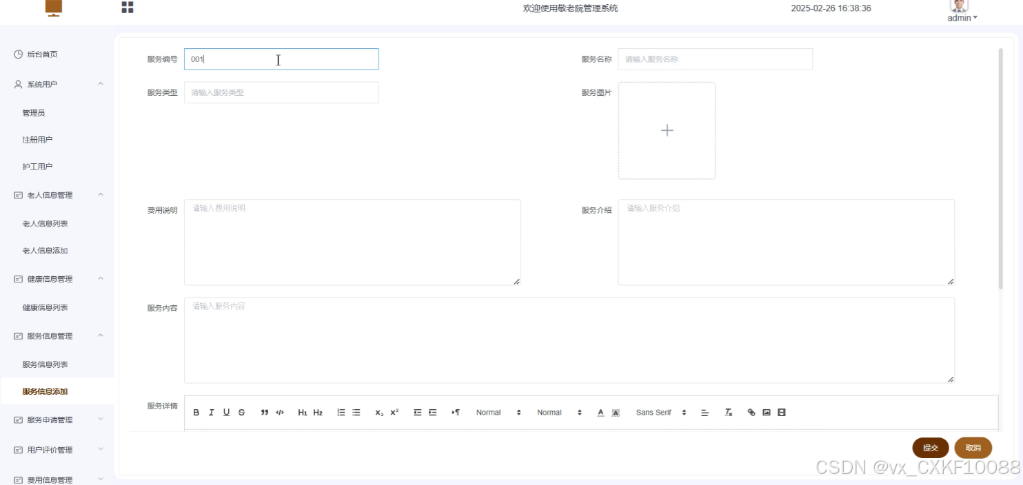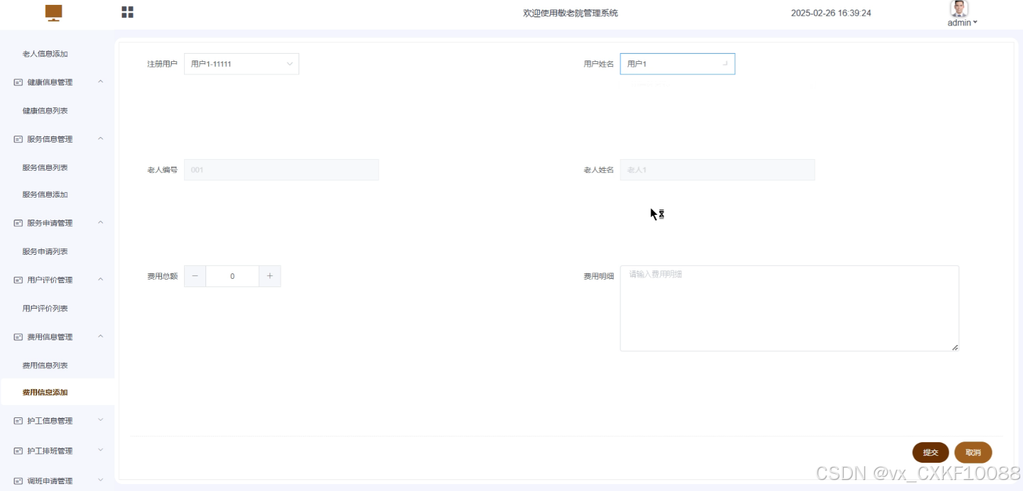 在系统设计过程中,我们充分考虑了敬老院管理的实际需求,通过需求分析、系统设计、编码实现、测试调试等多个阶段,确保了系统的实用性和稳定性。系统界面简洁明了,操作便捷,用户无需专业培训即可上手使用。