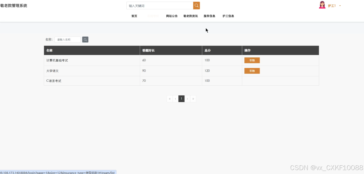 - 在线考试:在线考试模块允许护工进行自我评估和提升,通过完成相关的考试题目来测试和增强他们的专业知识和技能。