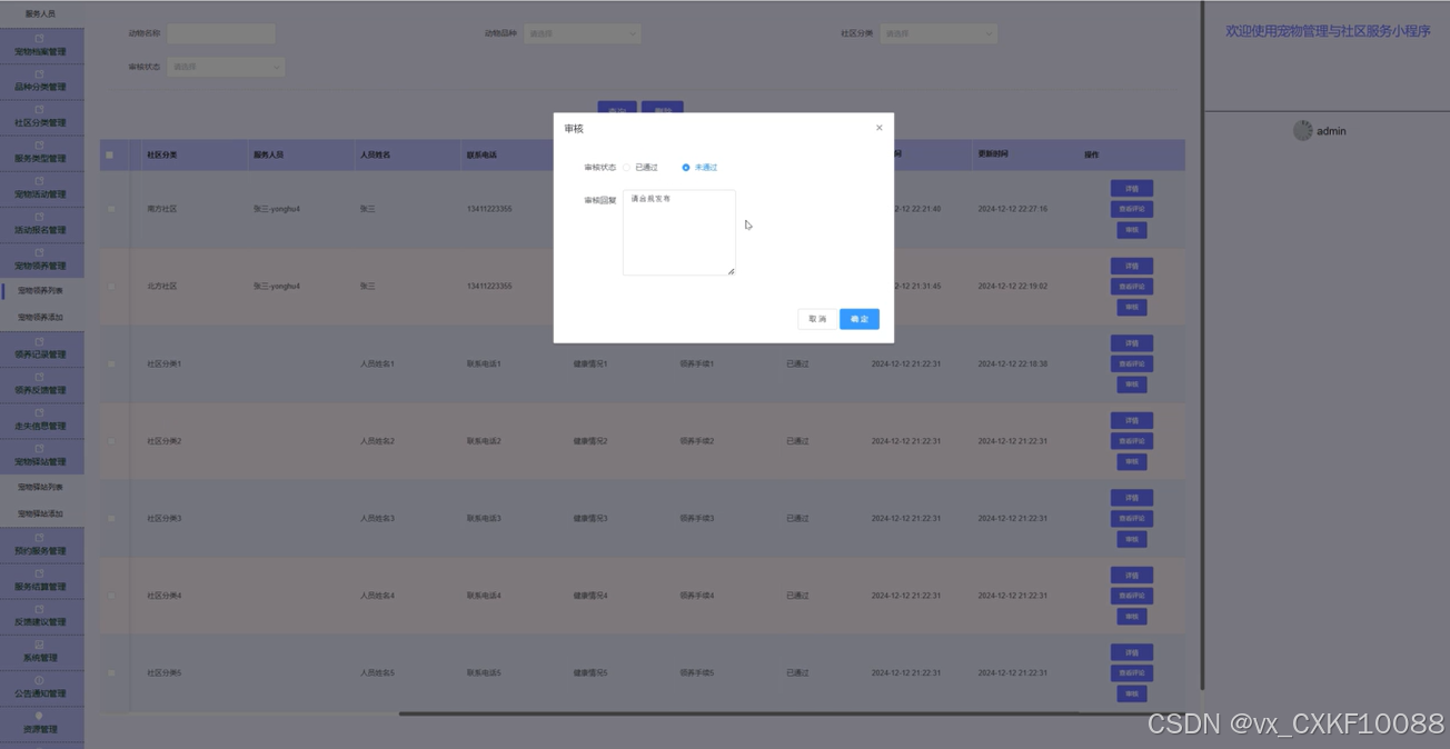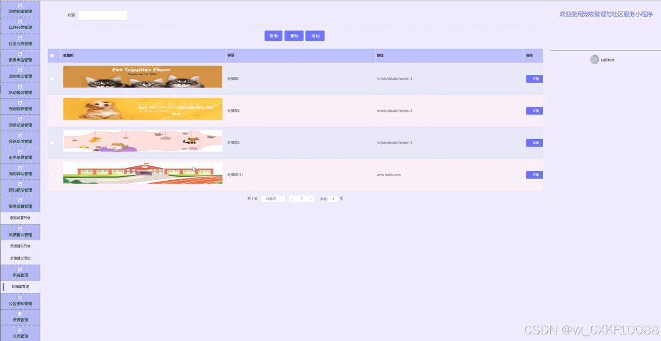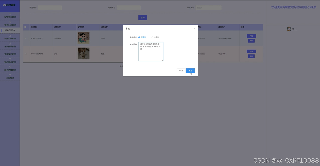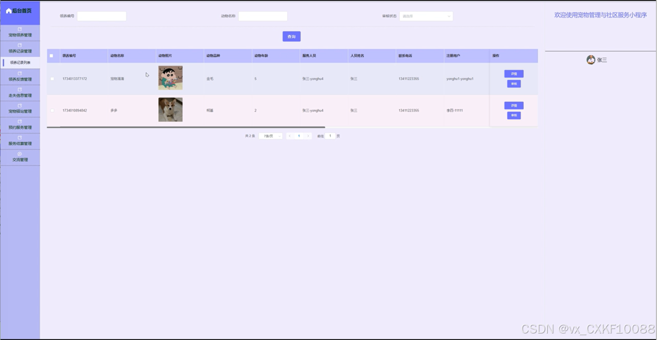 5.5.4 宠物领养管理界面
