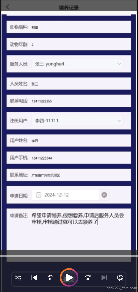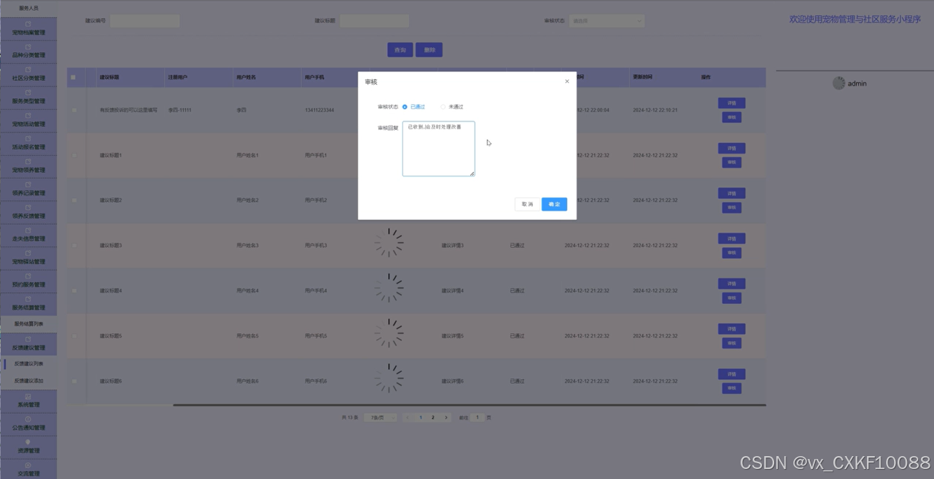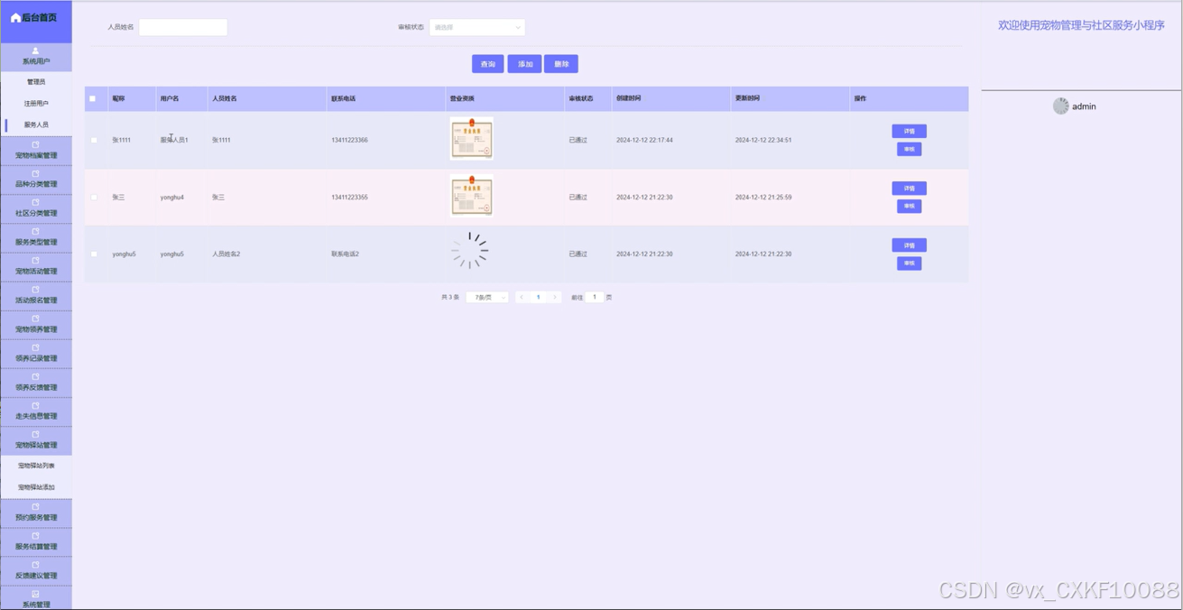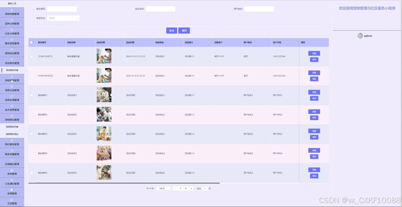 5.5.4 宠物领养管理界面