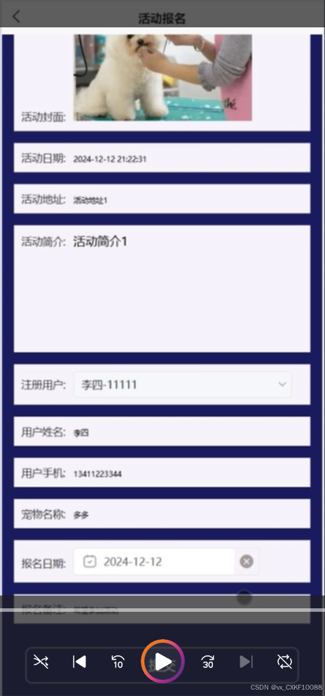 查找出相应宠物活动信息 |