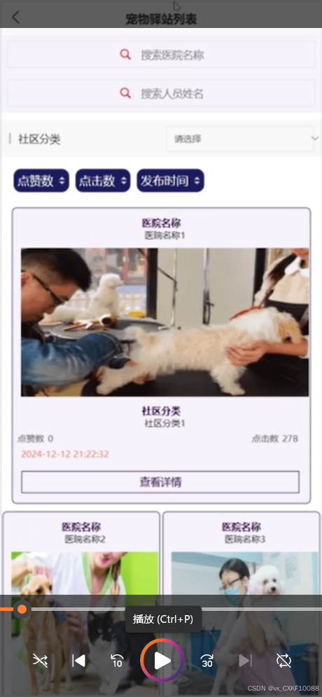 关键词:微信小程序,宠物管理,社区服务,Django框架,uniapp小程序框架,MySQL。