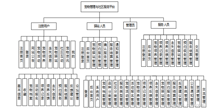本项目的核心目标是设计并实现一个基于微信小程序的宠物管理与社区服务平台,旨在为宠物主人提供一站式服务,覆盖宠物信息管理、健康追踪、社区互动、宠物领养与走失信息发布等多个功能模块。随着宠物成为越来越多家庭的重要成员,宠物管理需求日益增加,传统的宠物管理方式已不能满足现代宠物主人的需求,因此本平台应运而生。平台的用户端功能包括注册与登录、个人资料及宠物档案管理、健康记录追踪、社区互动等,用户可以在平台上便捷地管理自己的宠物信息,实时跟踪宠物的健康状况,并根据平台提供的健康建议进行养护。同时,平台还通过社区功能,允许用户发布宠物相关的帖子、照片、视频,与其他宠物爱好者进行互动交流,分享养宠心得和生活点滴。宠物领养功能的设计,则为那些想领养宠物的用户提供详细的宠物信息,并支持宠物领养的相关手续处理。走失信息发布模块则帮助宠物主人在宠物走失的情况下快速发布信息,利用社区力量寻找走失的宠物。此外,平台还提供服务预订功能,用户可以在线预约宠物美容、健康检查、训练等服务,并通过微信支付进行支付操作,方便快捷。