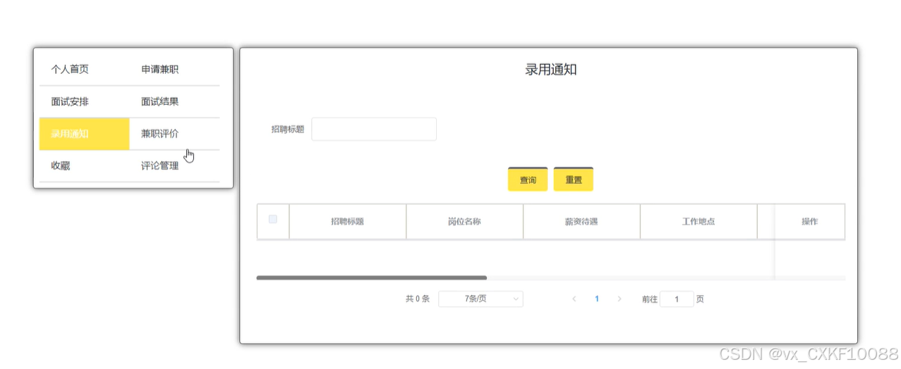 (7)接收通知:接收系统推送的兼职岗位更新、面试安排和系统通知。