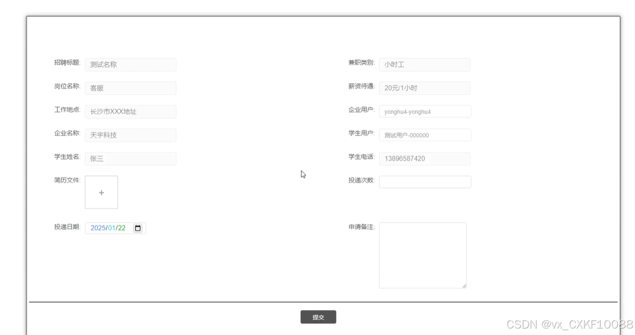 (4)申请兼职:选择感兴趣的兼职岗位并提交申请。