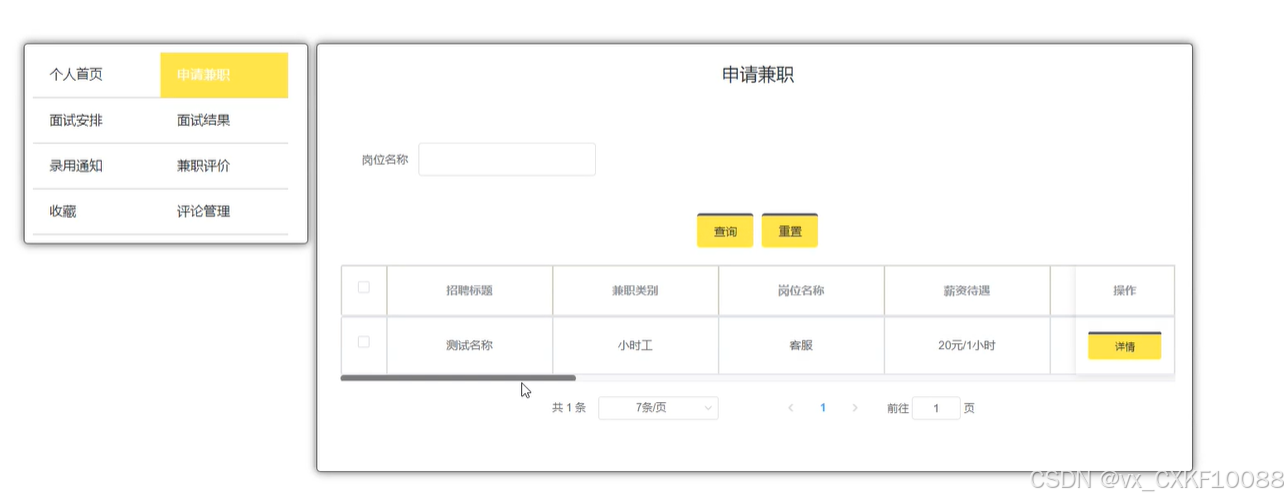 (5)查看申请状态:实时查看自己申请的兼职岗位的审核状态。