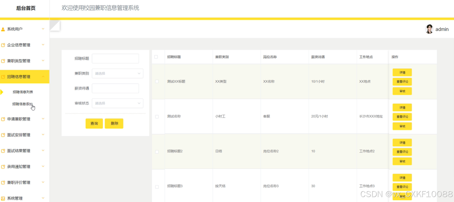 (2)信息审核:审核企业发布的兼职信息,确保信息的真实性和合规性。
