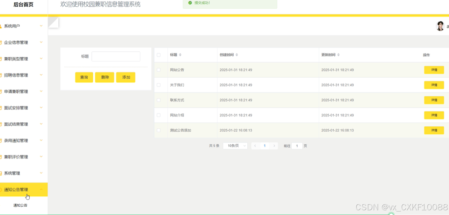 通知公告:发布系统公告或通知,传达重要信息。通知公告如图5-8所示。