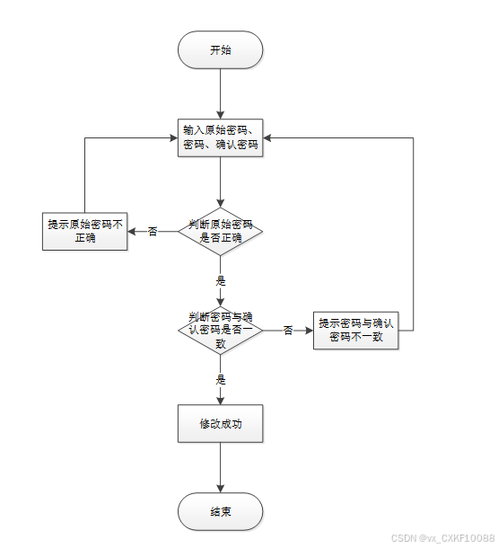 所有用户可以我的账户信息页面,点击修改修改密码进行修改登录密码操作,修改密码流程如图所示: