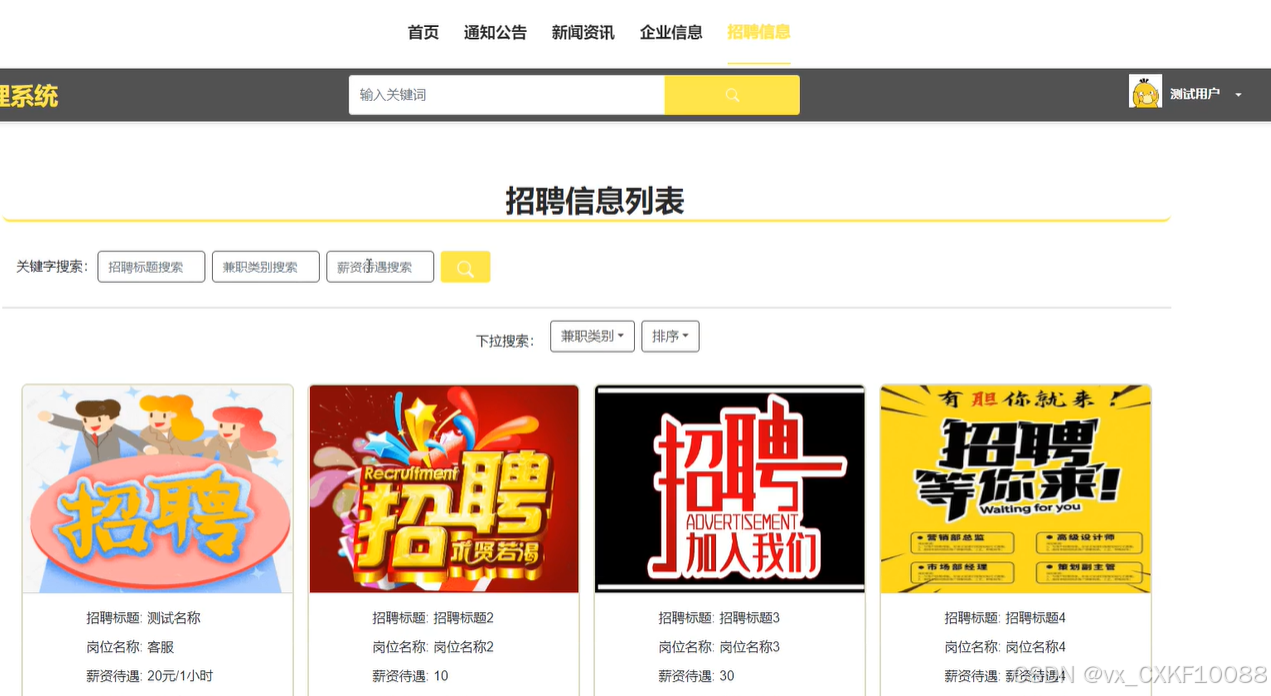 系统测试是软件开发过程中必不可少的环节之一,它旨在验证整个软件系统是否满足需求规格说明书定义的要求。对于django校园兼职信息管理系统网站而言,们主要进行功能测试,以下是部分功能的测试用例: