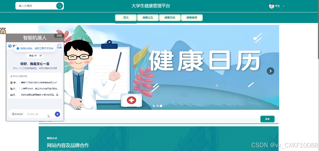 - 健康公告:提供系统相关的健康公告信息,保证学生用户及时了解平台动态。