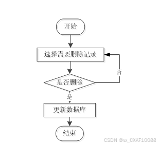 管理员可以对网站公告、图书资讯、图书信息等进行信息的删除,对要删除的信息进行选中后,点击删除按钮,系统会询问是否确定,若点击确定,则系统会删除掉选中的信息,并在数据库内对信息进行删除,删除信息流程图如图2-6所示。