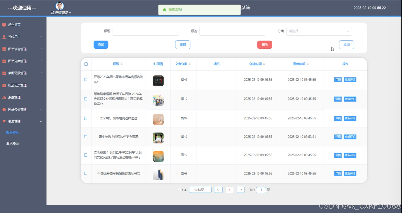 资讯分类管理:管理员可以对图书资讯进行分类管理,支持按照不同的主题、类型进行分类,便于用户查找。