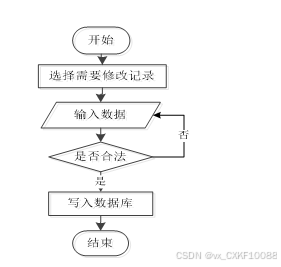 管理员可以对网站公告、图书资讯、图书信息等进行的修改,用户可以对自己权限内的信息进行修改,首先进入修改信息界面,输入修改信息数据,系统进行数据的判断验证,修改信息合法则修改成功,信息更新至数据库,信息不合法则修改失败,重新输入。修改信息流程图如图2-5所示。