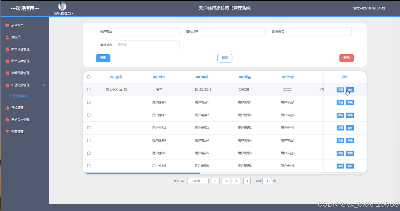 归还记录管理:管理员可以查看和审核所有用户的归还记录,检查归还情况。