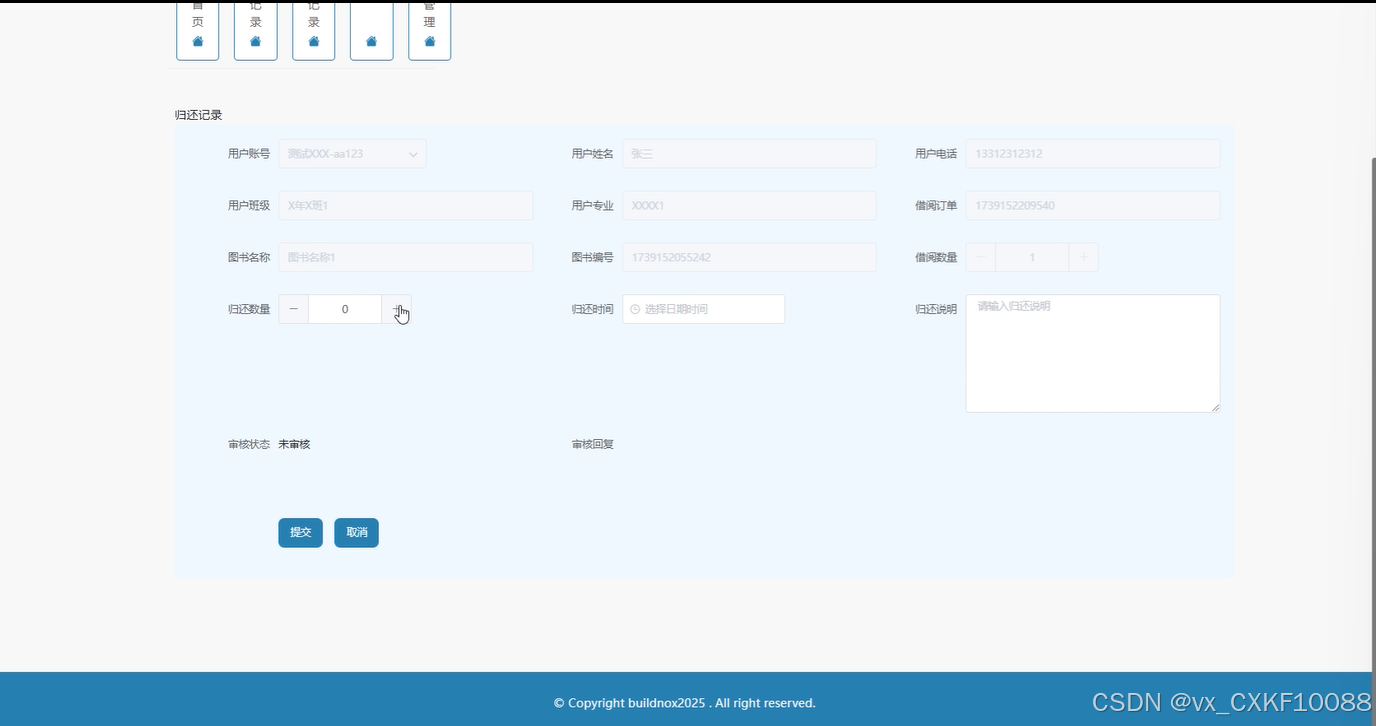 归还记录:用户可以提交图书归还信息,并查看审核状态。