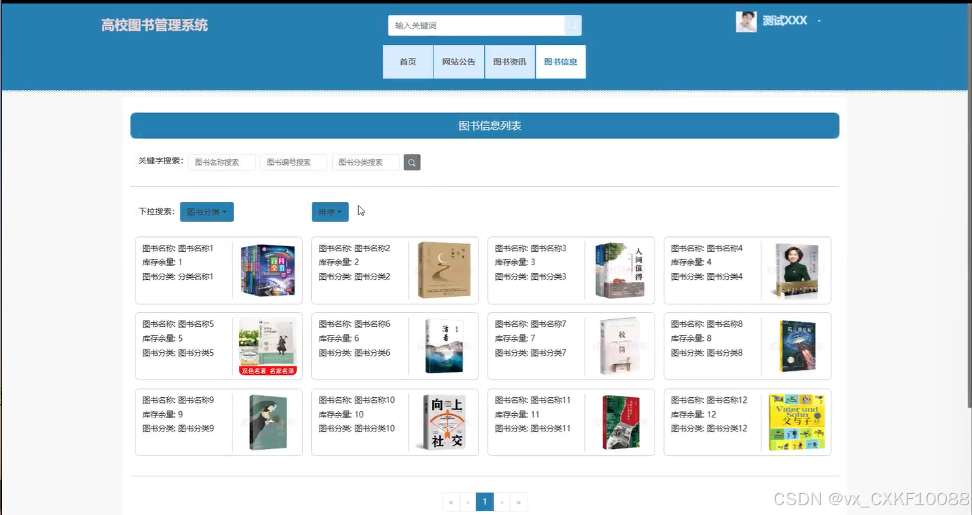 | 预期结果 | 页面显示包含有搜索关键字的图书信息 |