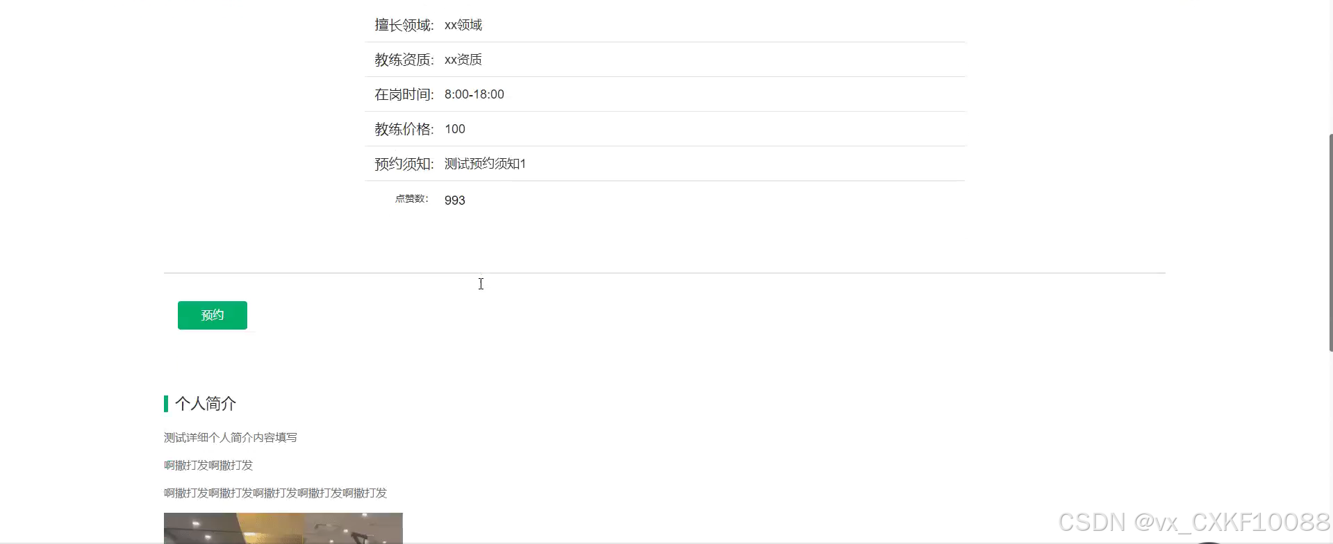 - 教练预约管理:支持管理员查看并协助管理教练的预约安排,优化资源配置,提升服务效率。