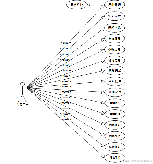 图3-1 健身馆预约管理系统会员用户角色用例图