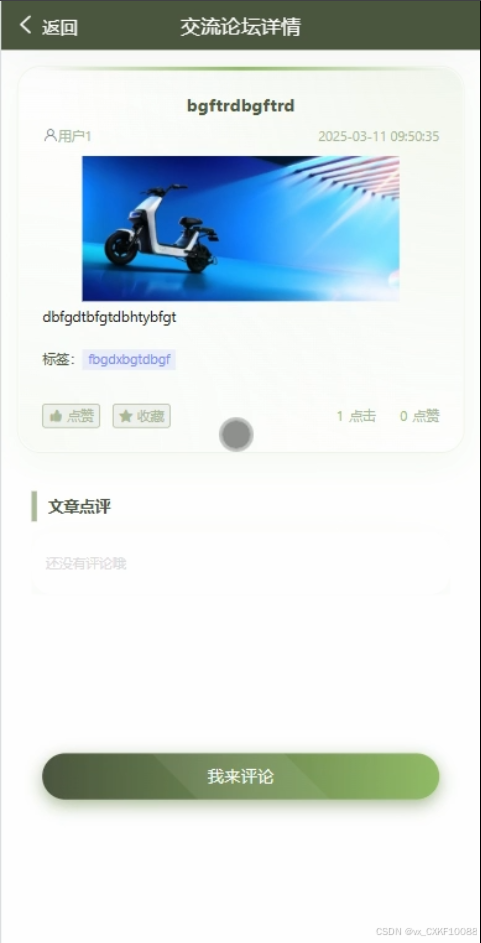用户进入电动车社区,参与讨论、分享经验和提问,查看其他用户发布的帖子和回复,增强互动交流。电动车社区界面如图5-2所示。