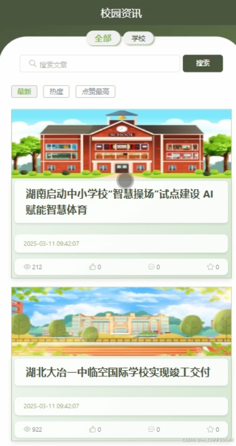 用户查看校园资讯页面,浏览校园新闻、活动安排等,获取校园内最新动态。校园资讯界面如图5-3所示。