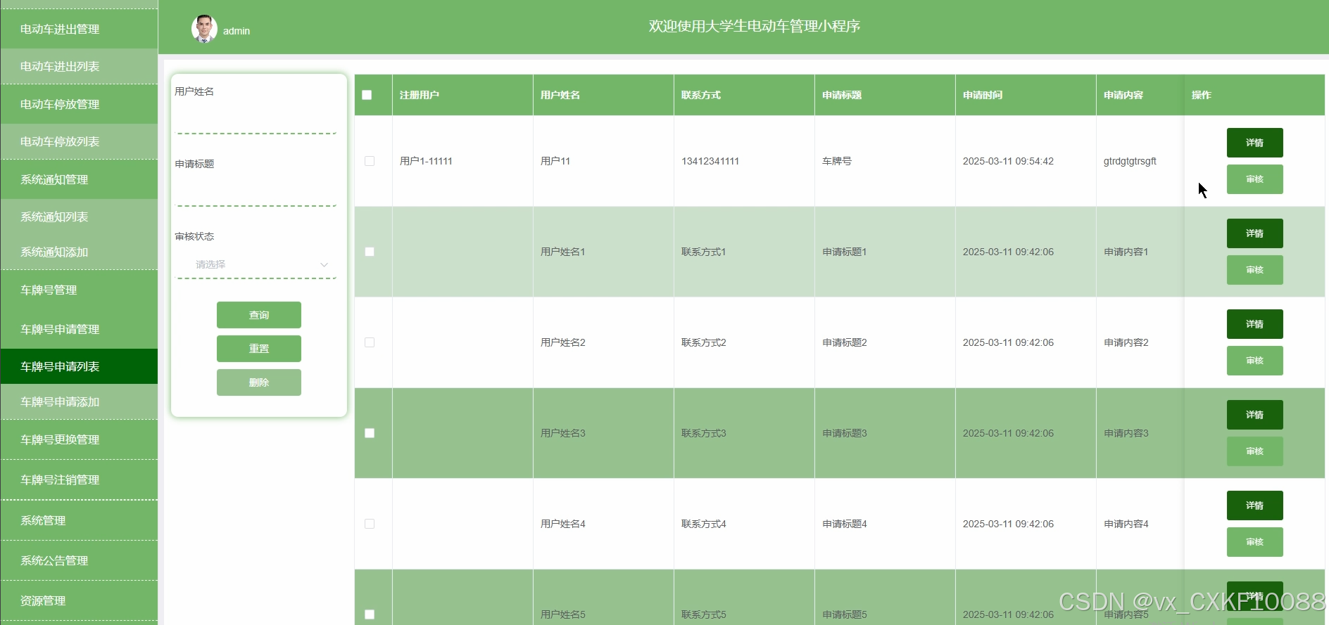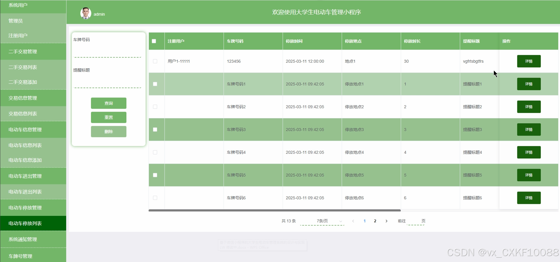 管理员负责电动车车牌号的登记与管理,确保每辆电动车的车牌信息与车辆状态一致,防止信息混乱。车牌号管理界面如图5-11所示。