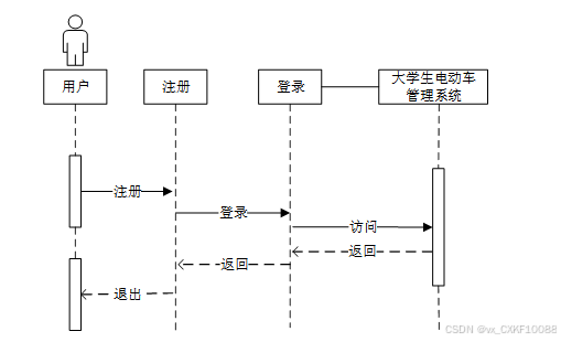 用户通过注册模块发送注册请求,系统完成注册后返回确认信息。随后,用户通过登录模块发送登录请求,系统验证用户信息后允许访问目标系统。用户完成操作后可选择退出,系统终止会话。注册时序图,如图4-3所示。