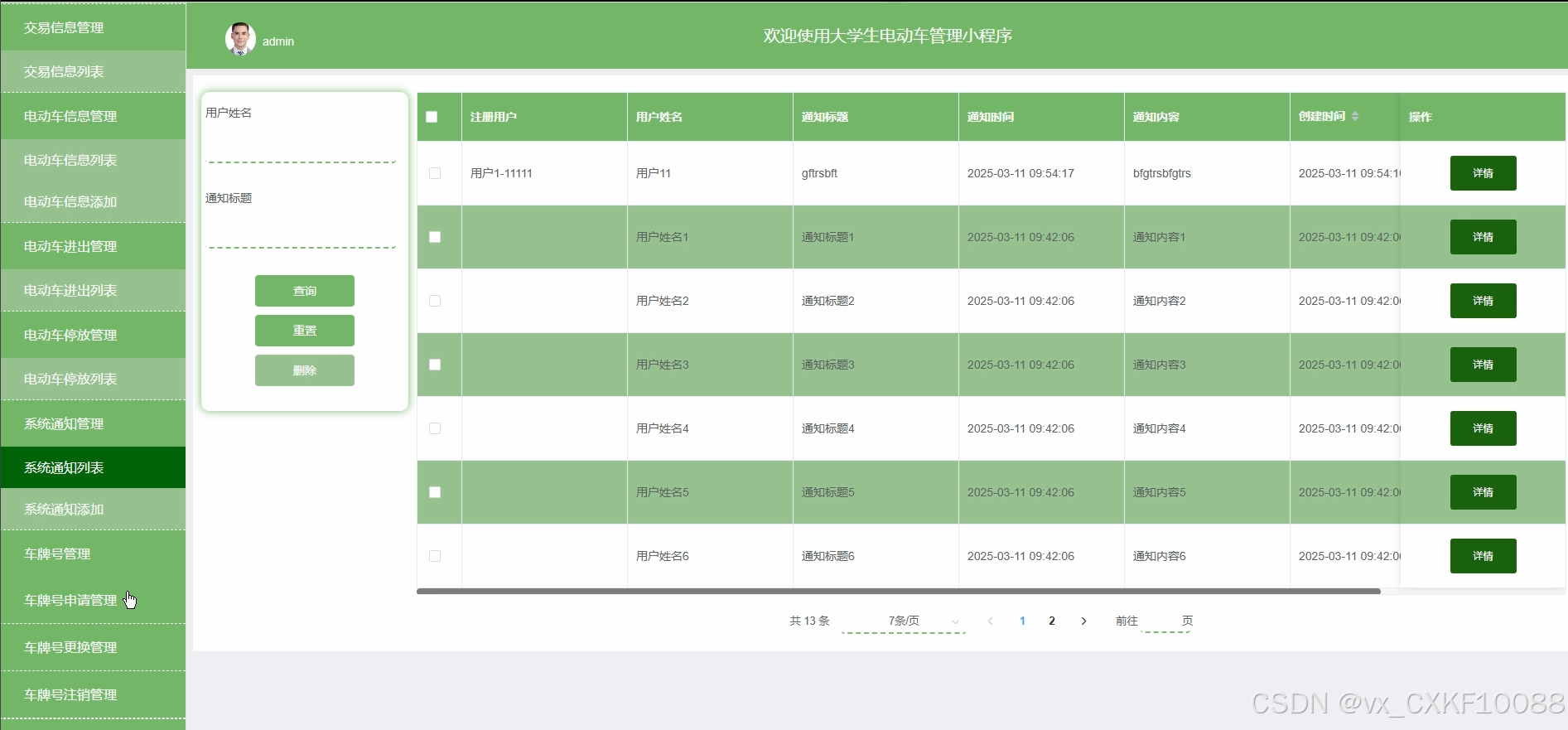 管理员可以发布系统通知,向所有用户传达重要信息、活动公告或管理规定,确保用户及时收到通知。系统通知管理界面如图5-10所示。