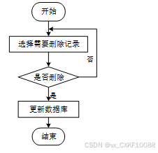 用户选择需要删除的记录后,系统判断是否确认删除。若未确认,返回选择环节;若确认删除,则更新数据库,删除对应记录,完成操作后流程结束。删除信息流程图如图3-8所示。