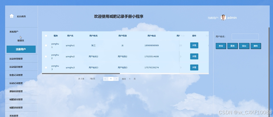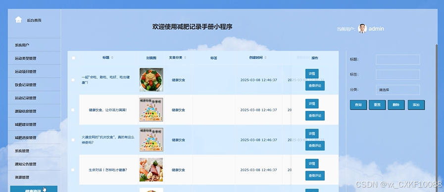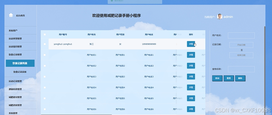 The system also has a high degree of scalability and maintainability to facilitate the addition and optimization of subsequent functions. Through continuous technical update and service upgrade, the system will provide users with more perfect and efficient weight loss records and management services, and help users to easily achieve the goal of healthy weight loss.