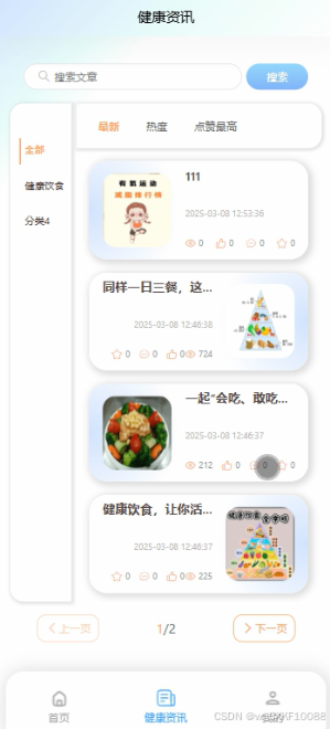 系统定期更新健康减肥、营养饮食等方面的资讯,帮助用户了解减肥知识,提升健康意识。健康资讯界面如图5-6所示。