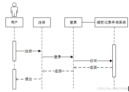 用户通过注册模块发送注册请求,系统完成注册后返回确认信息。随后,用户通过登录模块发送登录请求,系统验证用户信息后允许访问目标系统。用户完成操作后可选择退出,系统终止会话。注册时序图,如图4-3所示。