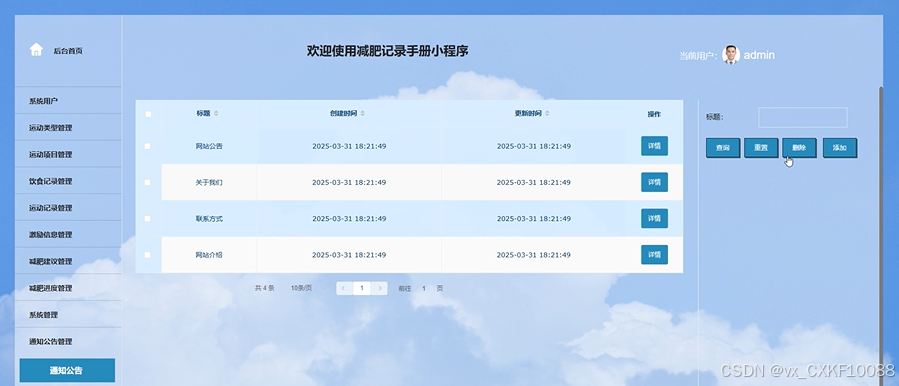 平台设有专门的通知公告板块,实时更新减肥动态及重要提醒信息。用户可以通过订阅功能,及时获取自己感兴趣的减肥信息,避免错过精彩内容。通知公告界面如图5-4所示。
