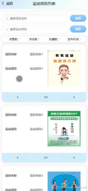 | 查看运动项目测试 | 登录系统 进入运动项目页面 使用搜索栏输入关键词搜索运动项目 | 无 | 符合预期 |