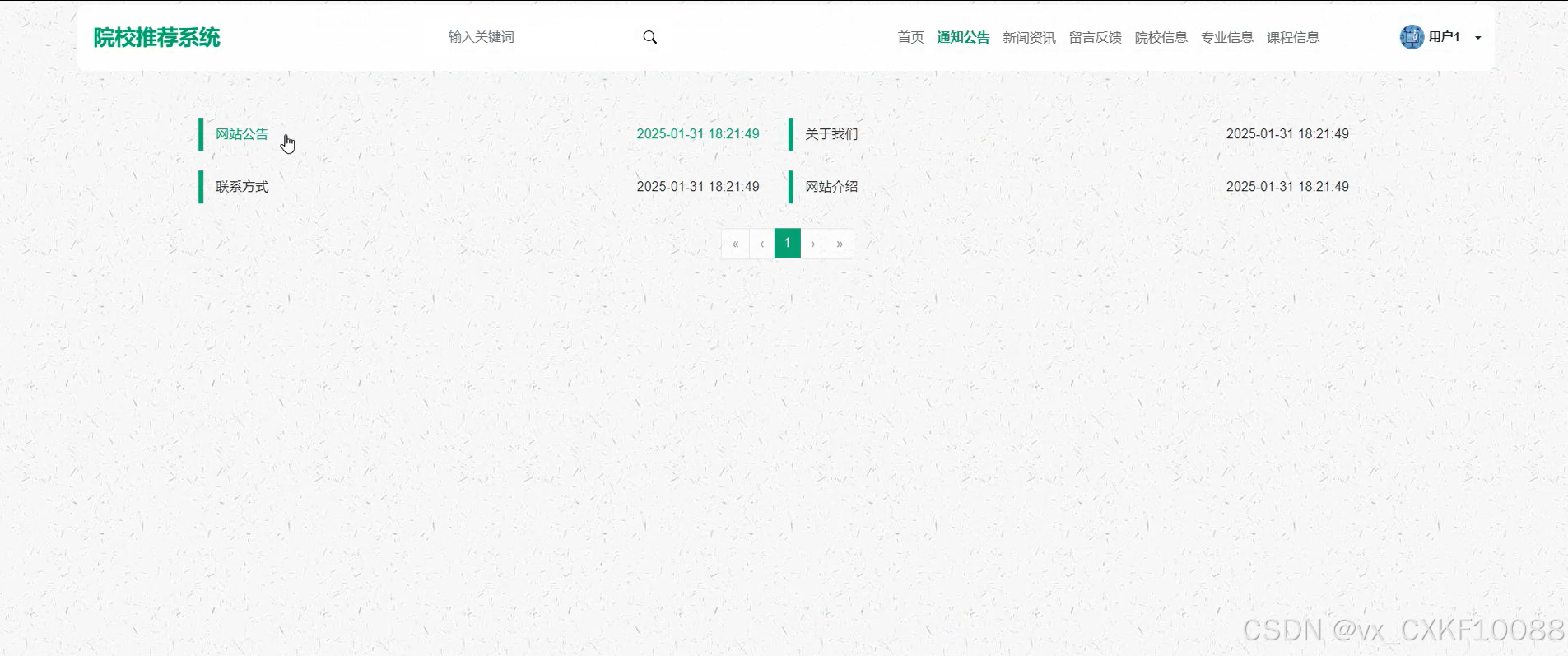 (2)通知公告:主要展示后端发布的通知公告信息。