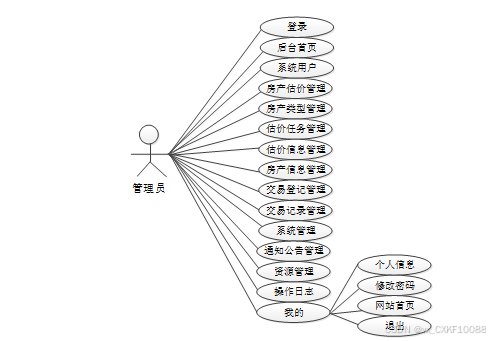 管理员登录后,可以对系统用户、房产估价、估价任务管理、估价信息、房产信息、交易登记、交易记录等进行全面的管控并可以进行修改个人信息和登录密码等操作。
