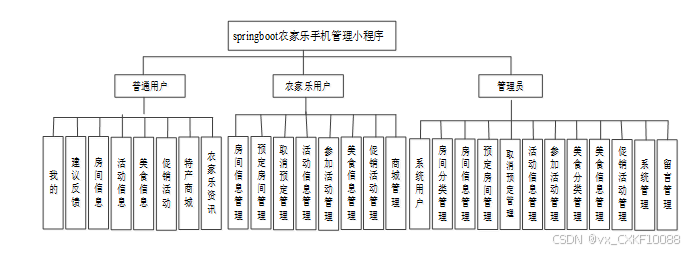 springboot家政服务管理系统包含普通用户、 农家乐用户、管理员三个角色划分,每个角色对应的主要功能如下: